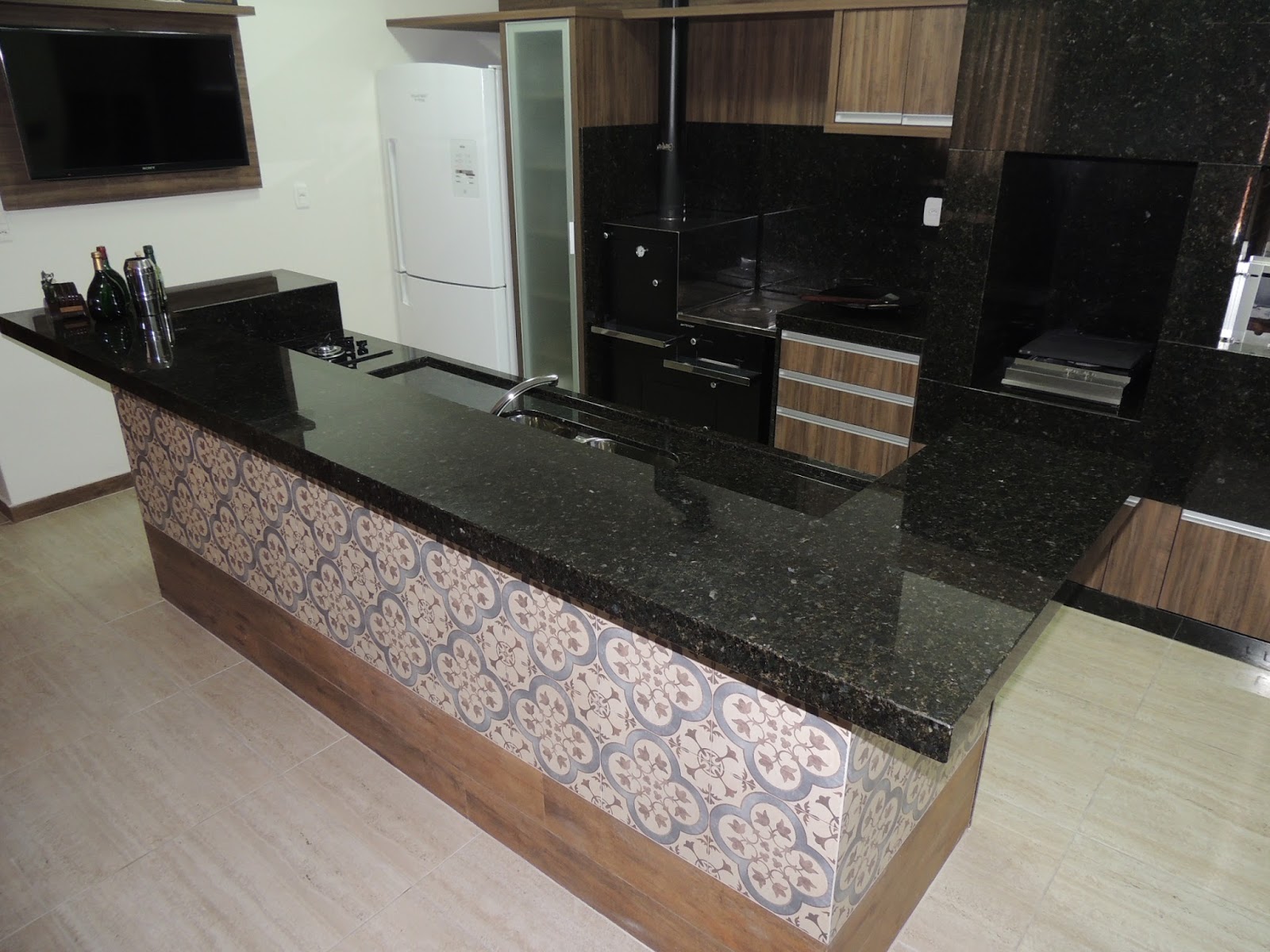 Bancada com revestimentos cerâmicos e acabamentos em granito são gabriel.